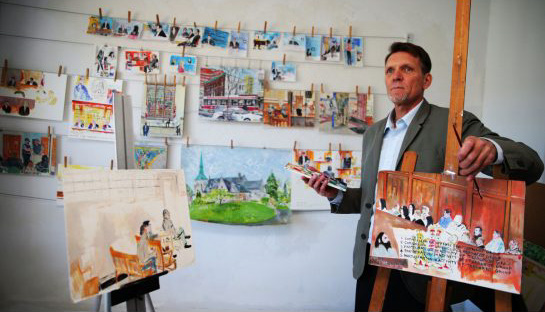 For 13 years, David Louis Wall has painted in Toronto’s courthouses. Nearly everything he creates is donated to the Archives of Ontario. He earns no money for this work.